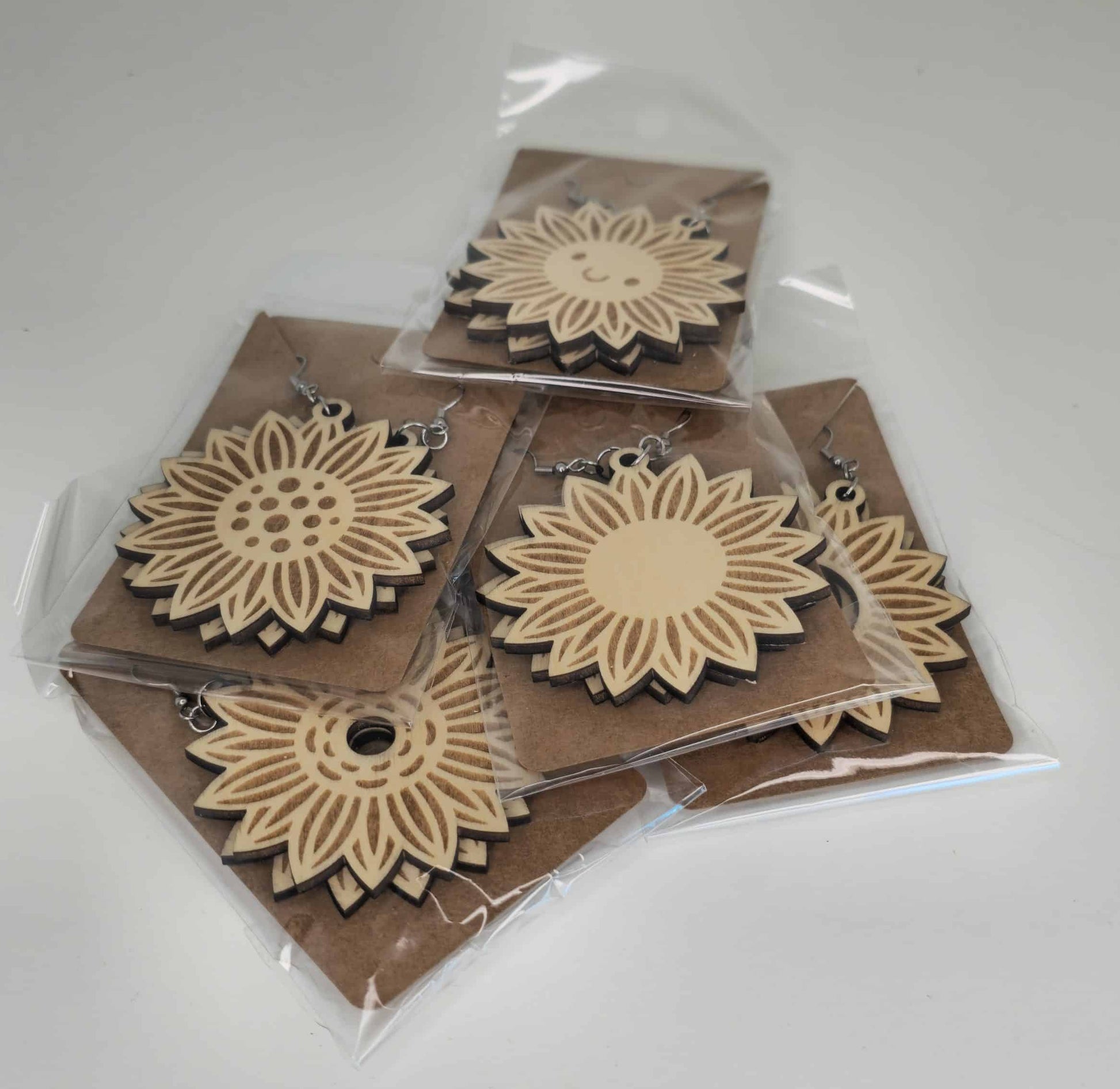 - Søte solsikkeøredobber i naturlig tre – gir antrekket ditt et friskt løft