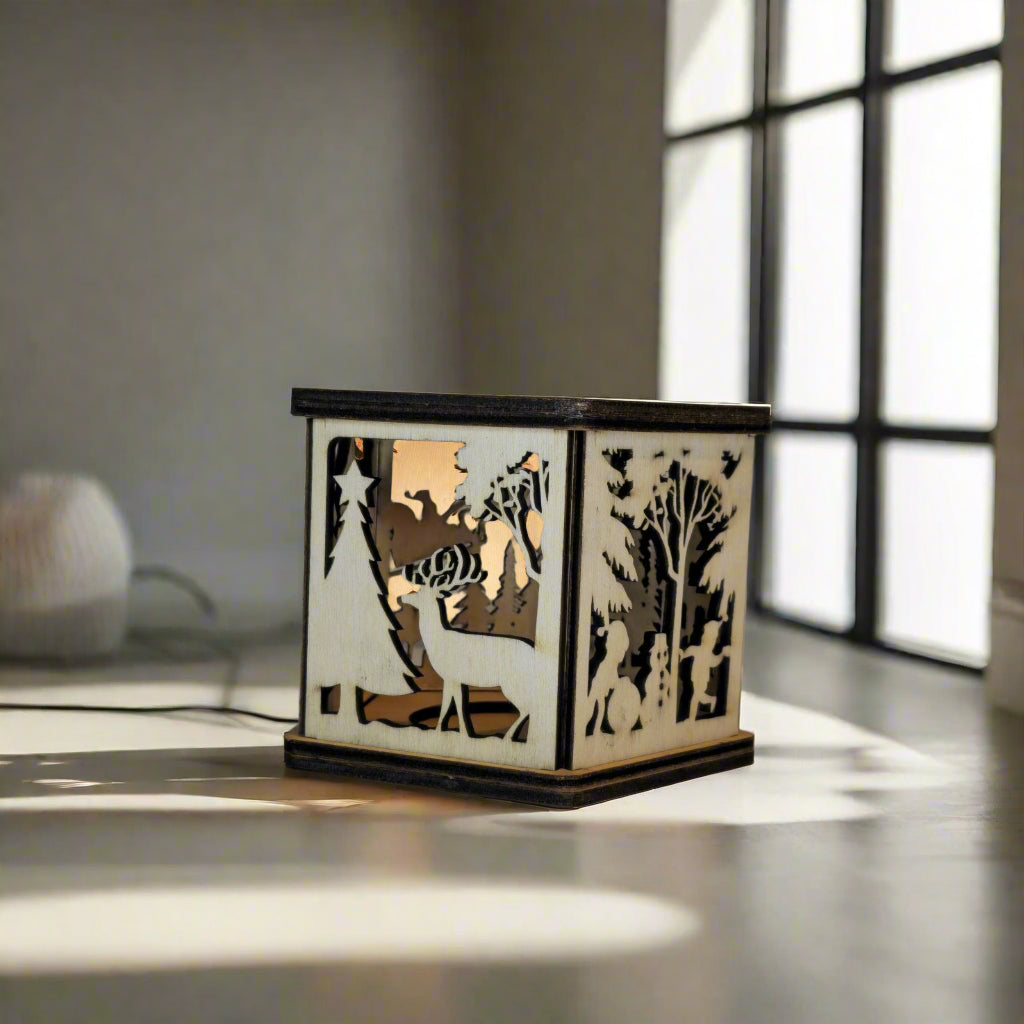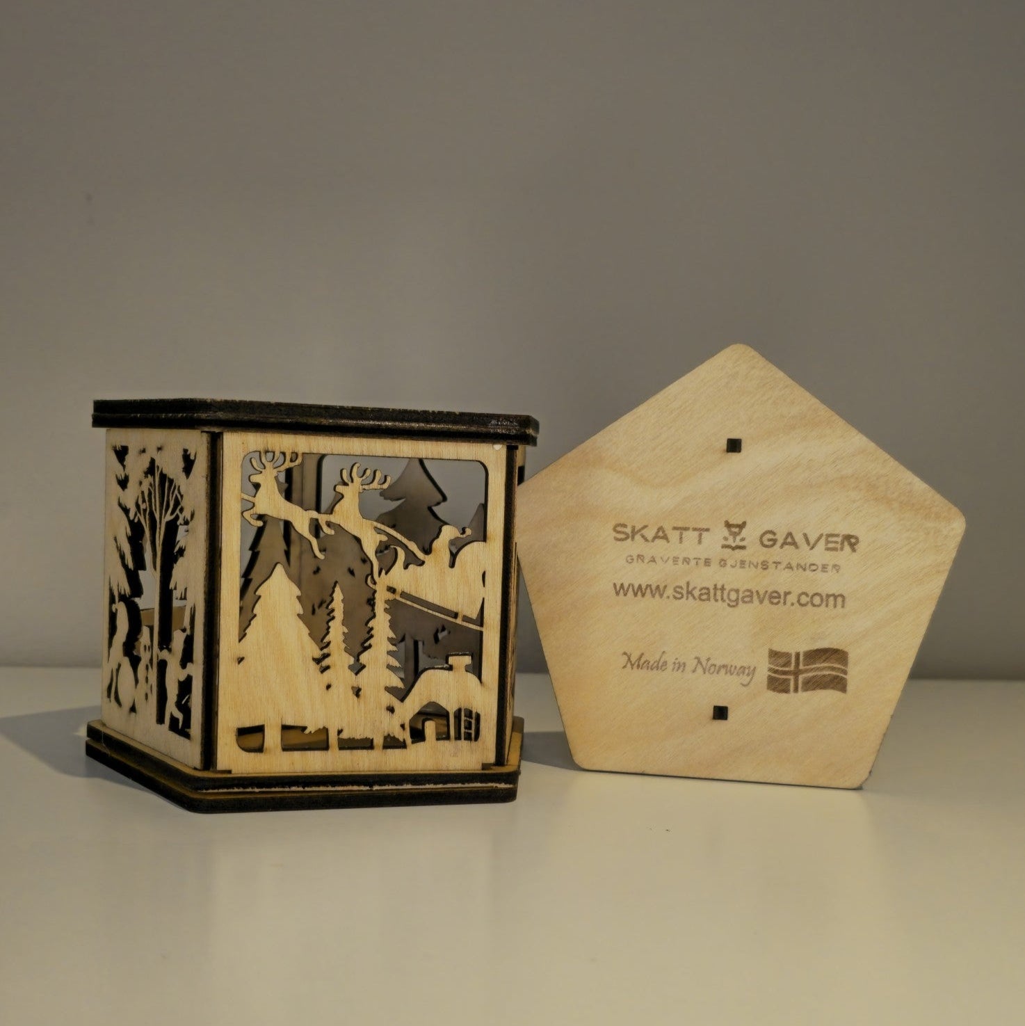 - Laget i naturlig tre – detaljert laserskjæring og stemningsfull belysning