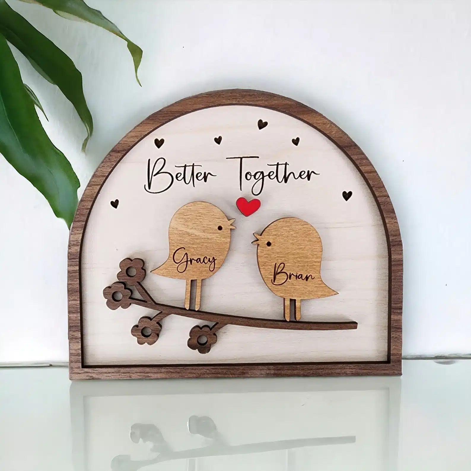 - Elegant fugldekor i tre – symboliserer ekte kjærlighet og samhold