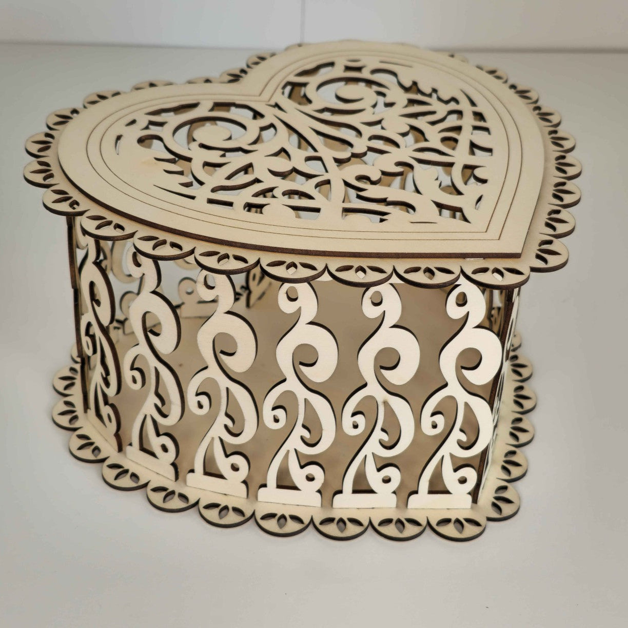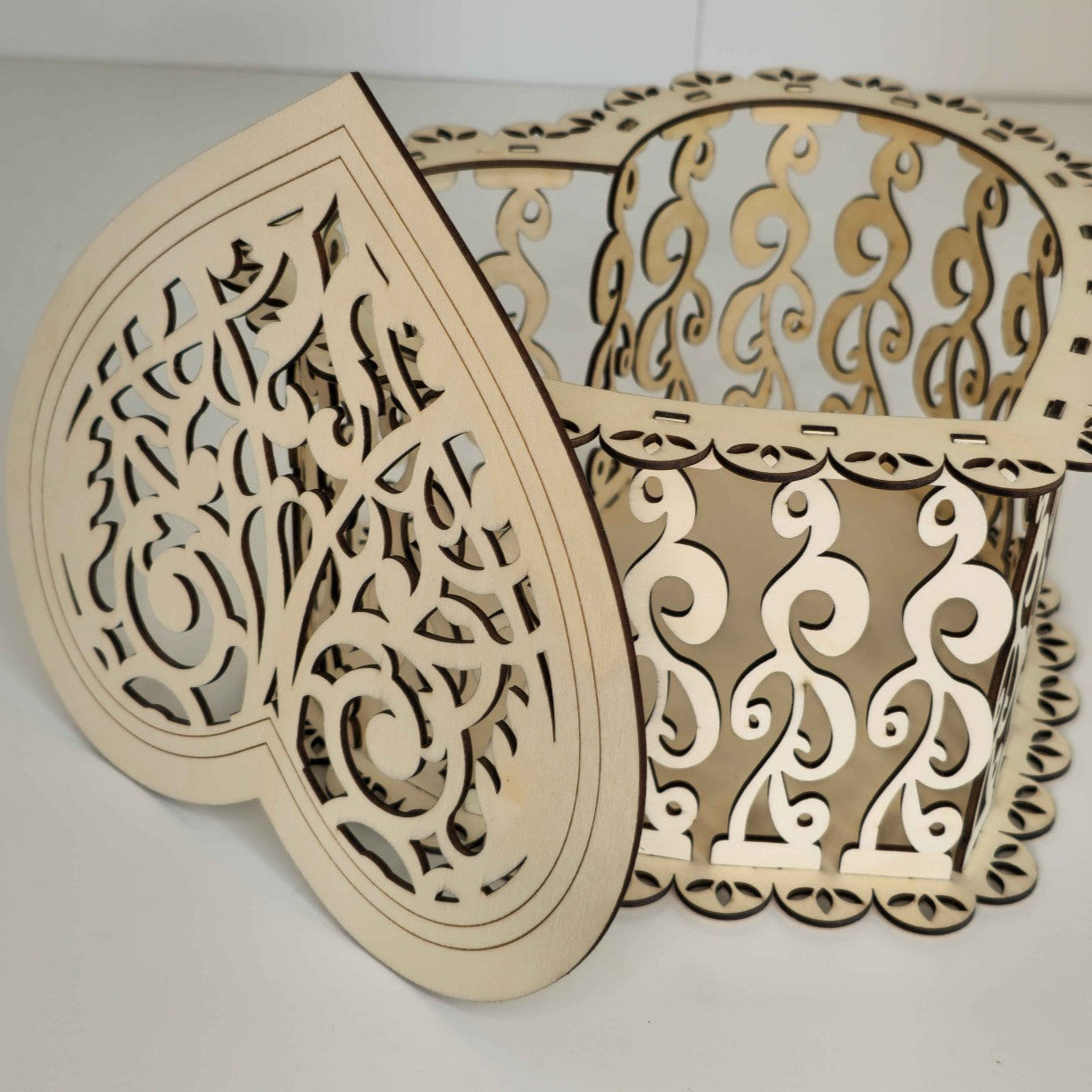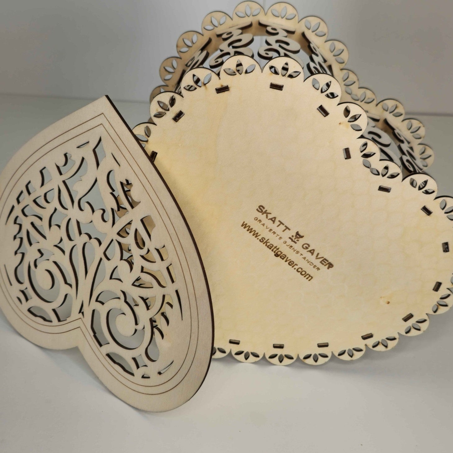 - Hjerteformet boks i naturlig tre – perfekt til små gaver, smykker eller kjærlighetsbrev