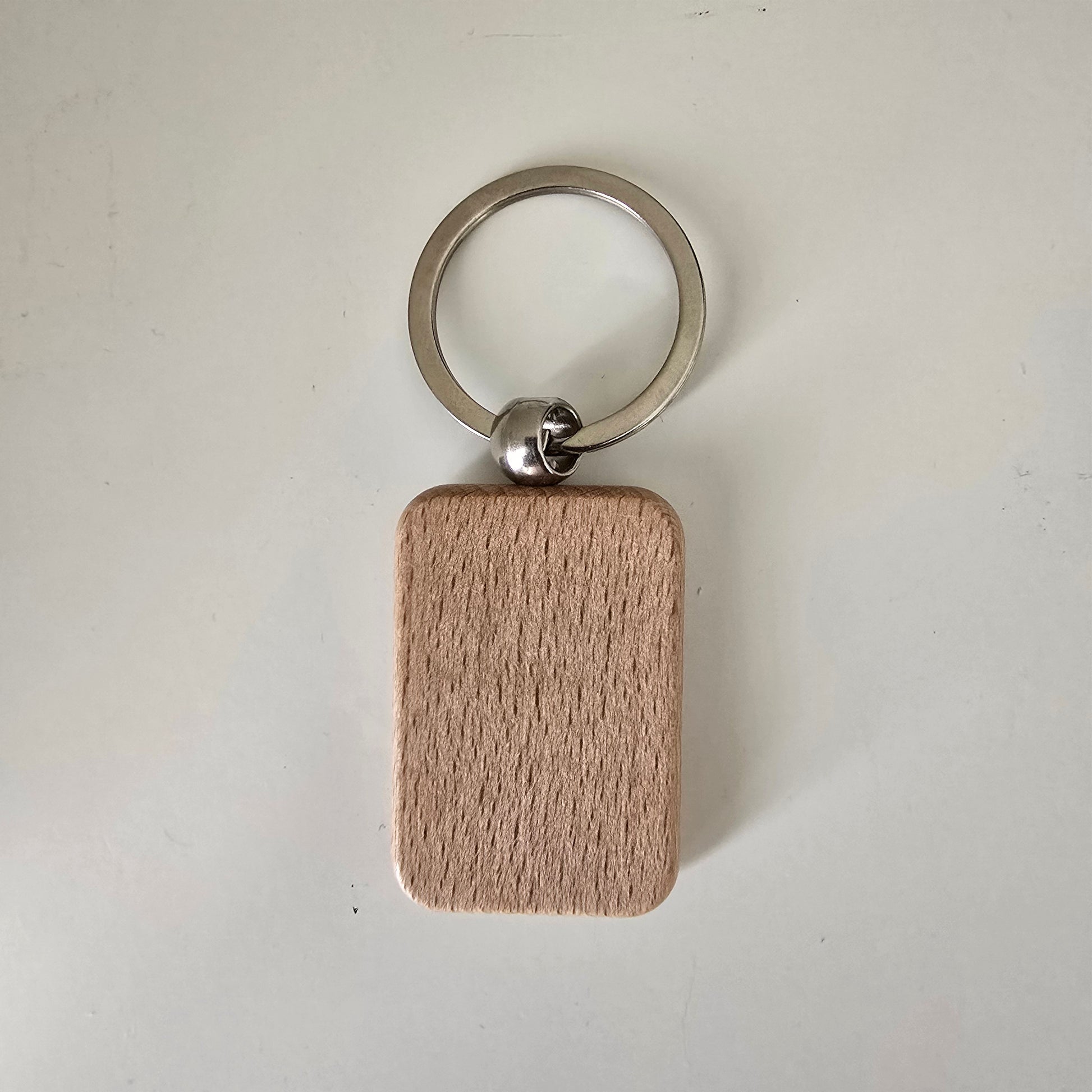 - Robust nøkkelring laget av naturlig tre og solid metallring