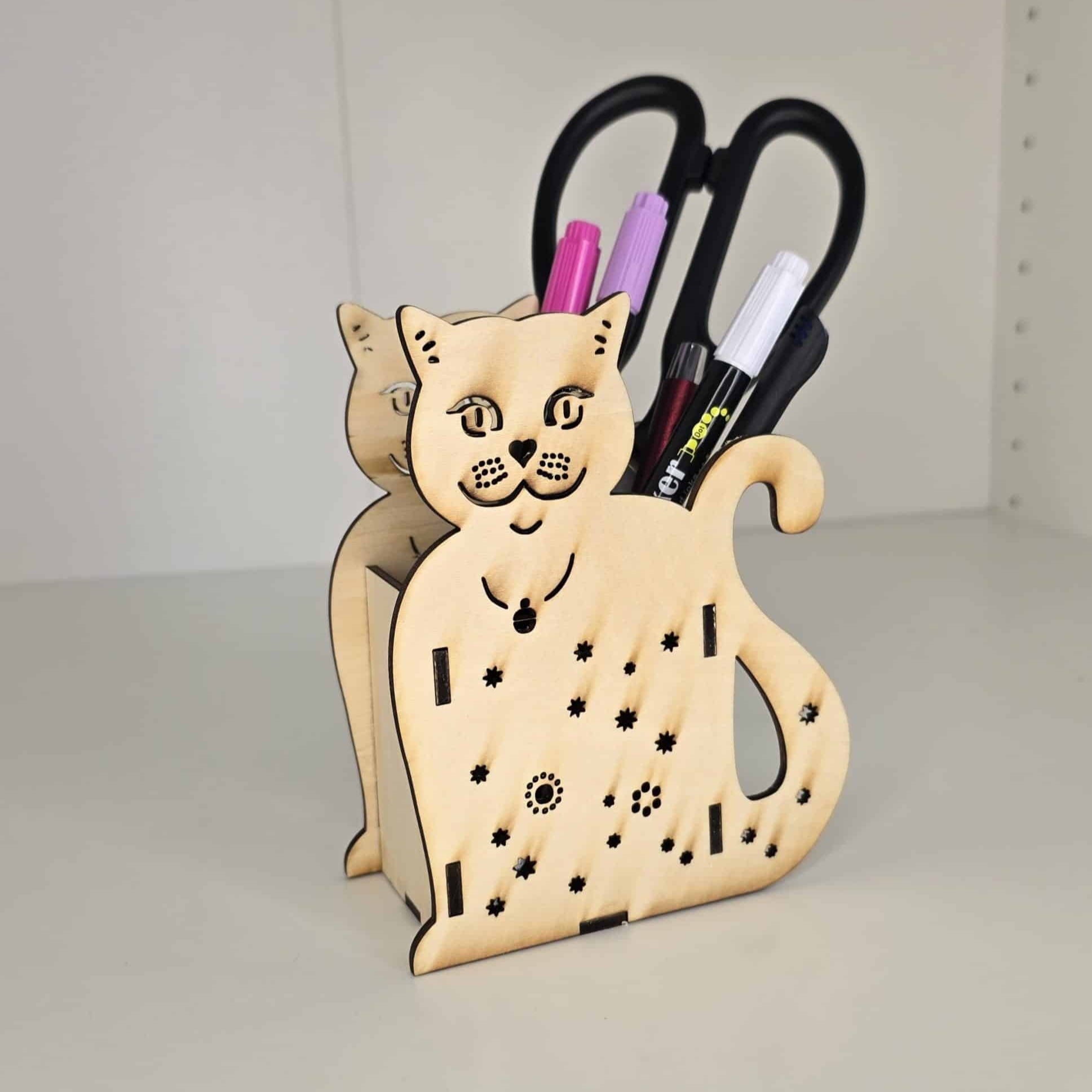 - Sjarmerende penneholer formet som en søt katt – perfekt for skrivebordet